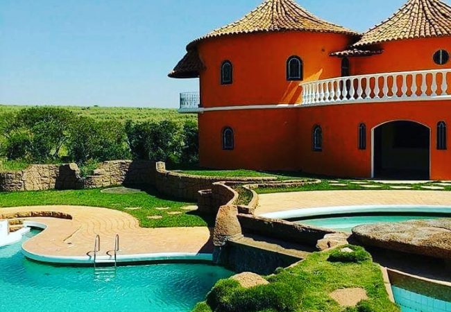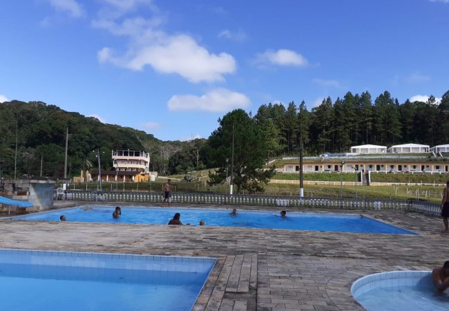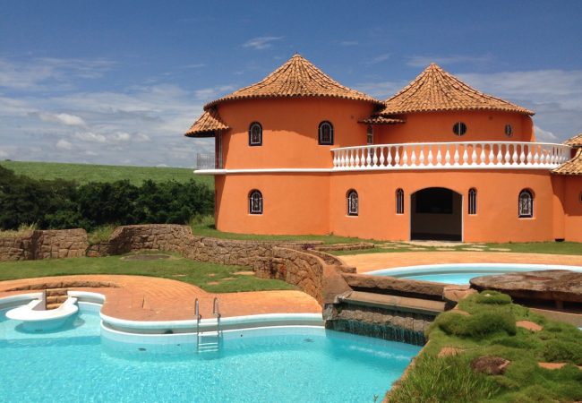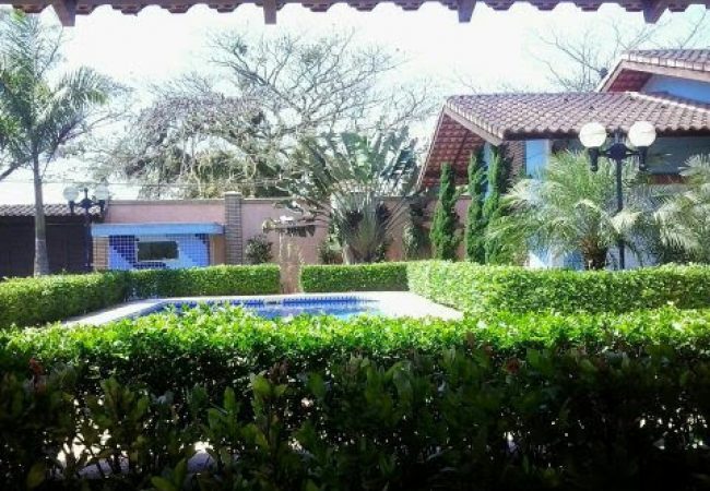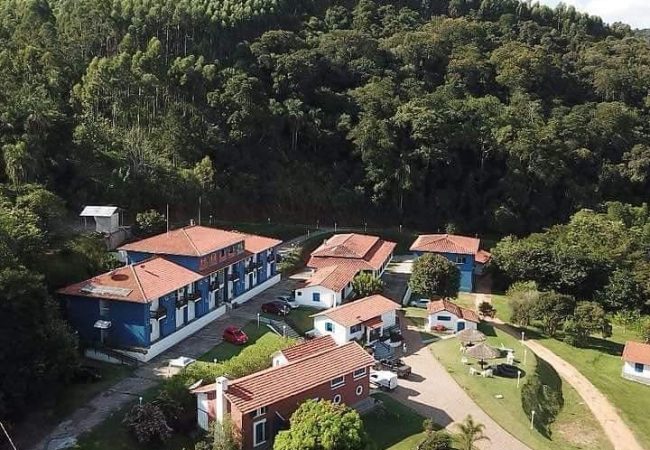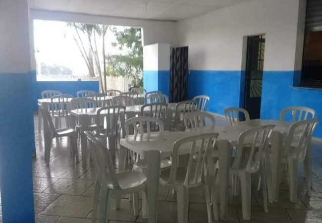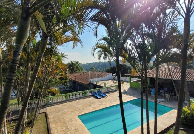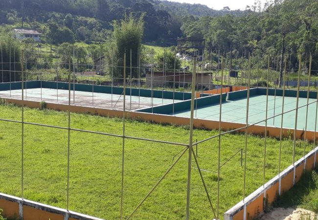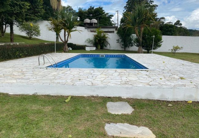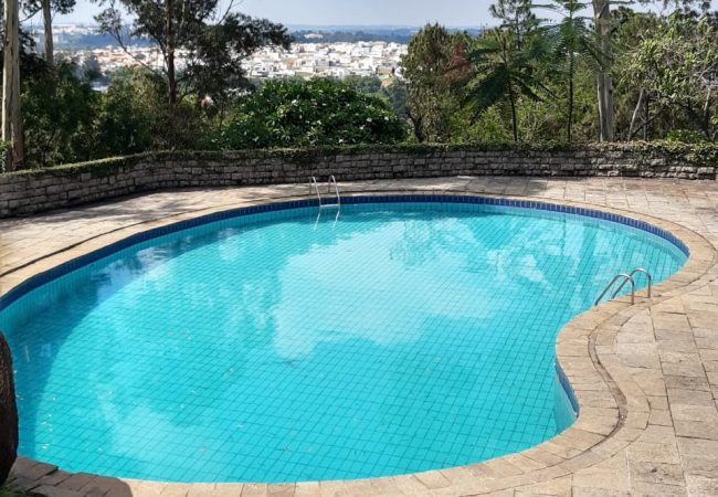 Ambientes equipados com piscina, academia, campo e quadra para esportes, refeitório, além de uma área ampla.